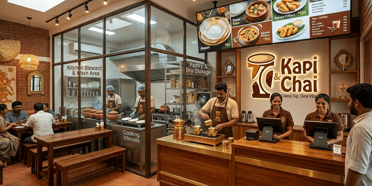 Kapi & Chai is a high-velocity urban cafe concept designed to bring authentic, soul-satisfying flavors to the mass market. We bridge the gap between traditional South Indian breakfast heritage and modern operational excellence. Our mission is to provide a consistent, high-quality experience for the everyday commuter and the family alike, ensuring that a steaming plate of Idli or a perfect cup of Chai tastes exactly the same, whether you are at store number one or store number one hundred.